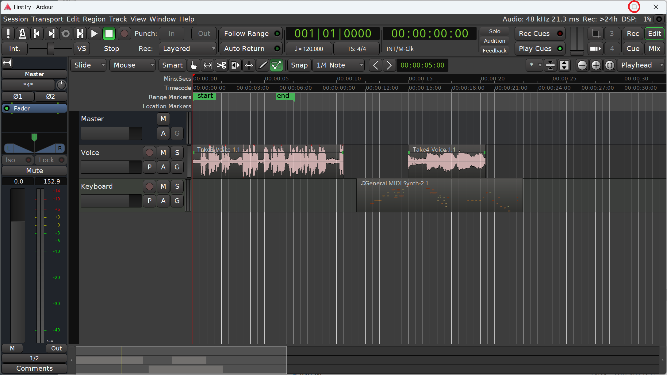 | Description | If I maximize the main window to screen size, then close Ardour, and then start Ardour again, the main window is not in "maximized" state any more. Instead, it is in "normal" state, appears at position [0, 0], and has the size of the screen. | ||||