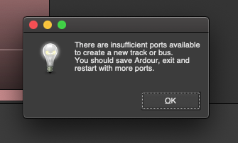 Okay, good to know! And thank you for continuing to have a look at this! Now, you have access to a full Apple hardware/software machine, yeah? Ditch whatever Linux you're using for a moment and try to open these two snapshots on *Apple/macOS* specifically: https://www.mediafire.com/file/xohre2y7yo2244o/Loading_Error_Test_5_NEW.zip/file I tested that session with x3 different Apple computers (x2 Mojave and x1 Monterey), and they ALL failed to load the "Loading Error Test 5 (WON'T Open).ardour" snapshot, with one computer (a slower MacBook Air) failing to load *both*. ... Also, another weird, related bug is happening this morning amongst all of this... Here's a 2.5min video I made demonstrating it: https://odysee.com/@icterine:a/Ardour-(pre9rc2,43)---Sources-with-Slashes-Issue-(1):4 TL;WW: I'm getting this popup after trying to create a track after importing a file from a path with slashes in the folder names: "There are insufficient ports available to create a new track or bus. You should save Ardour, exit and restart with more ports." O_____o ??? Hmm..... |