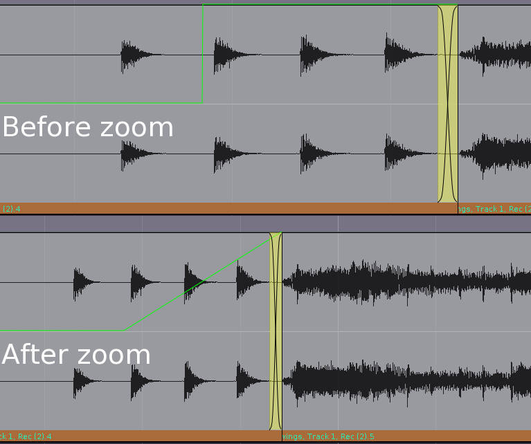 DescriptionWhen creating a volume envelope using the mouse, and then changing the zoom level, the envelope changes shape.