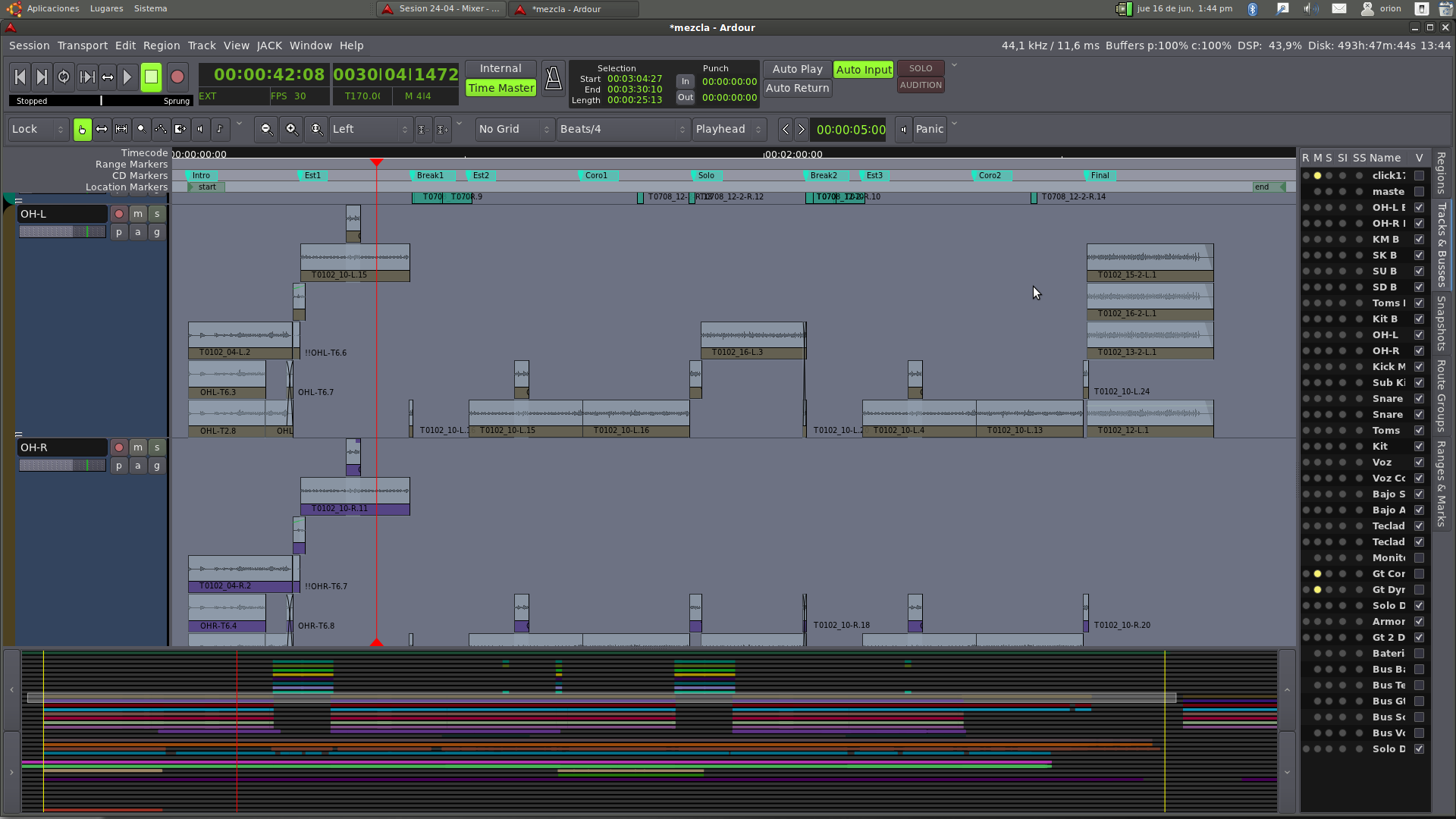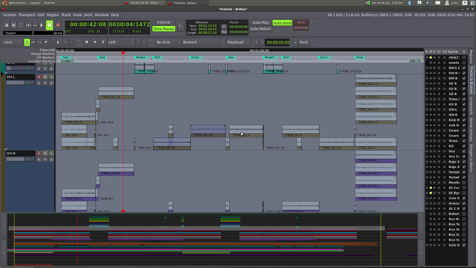 DescriptionA bit hard to explain, in a edit group i.e. Drums, editing layers is being un-helpful as selecting ranges from a track and moving-deleting should do the same on the other tracks for the same range (i.e. kick 10.1 - snare 10.1....) but rather than that, ardour is performing the edit in the first range, the selected track as it should but also performing the editing process equally for "all ranges that are in the same position" in the other tracks of the same edit group... also is marking as selected various regions that have just been deselected, please check the screenshots attached.
