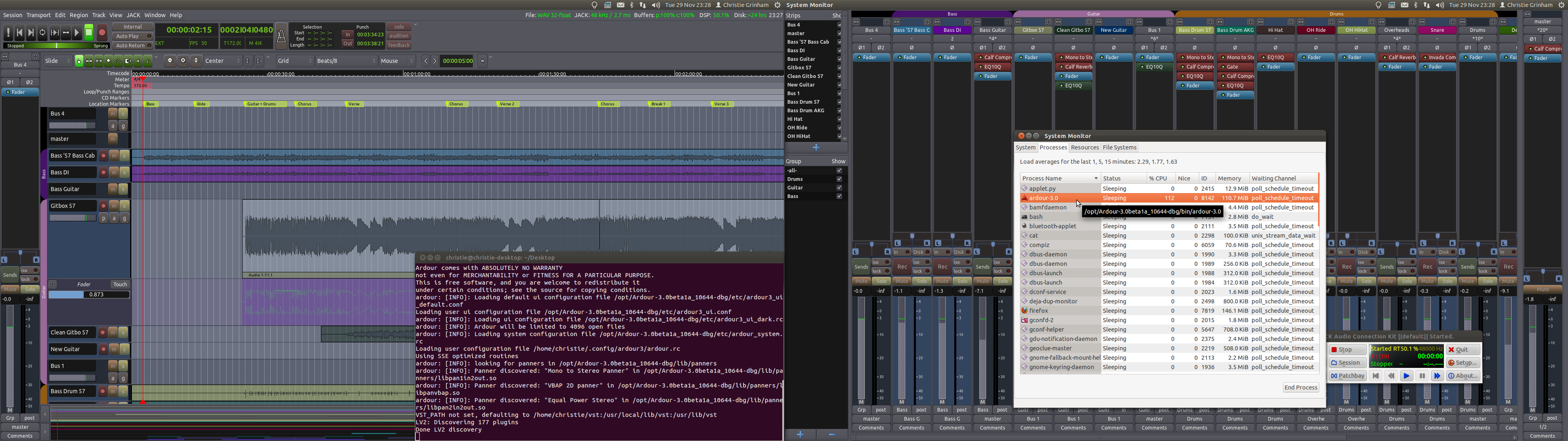 I am also getting this in the error log window when I start to play the track, it then continues after I have paused it: "[ERROR]: JACK: JackActivationCount::Signal value = 0 ref = 5 [ERROR]: JACK: JackActivationCount::Signal value = 0 ref = 5 [ERROR]: JACK: JackActivationCount::Signal value = 0 ref = 5" Over and over again to the point where I can't close the log window because it reappears immediately. |