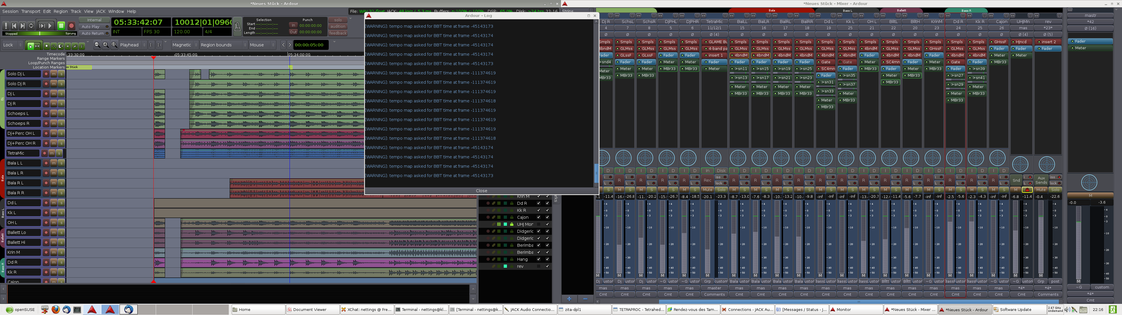 disclaimer: this session might have been dodgy to begin with. as you can see, it's huge (two long days of recording into it), and there was at least one ffado-related jack crash during that time. i'll be on the lookout for similar issues, but unless other people are seeing similar issues, i wouldn't treat it as too urgent...
