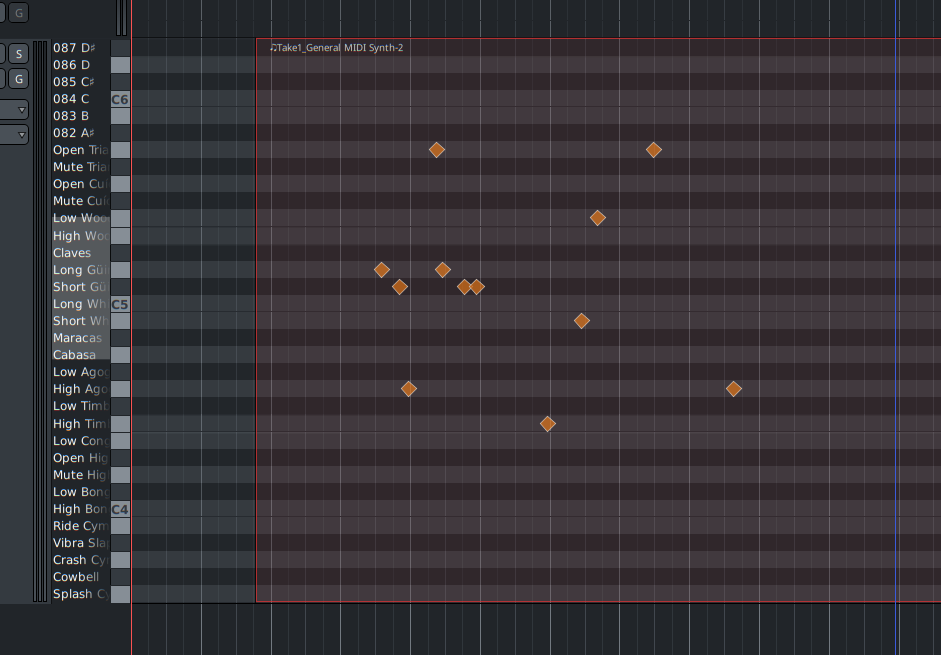DescriptionI know it has been suggested earlier in one form or another, but could you add a feature to Ardour3 where in the drum editing mode you could right click a key on the piano roll and assign a short two or three letters name to the key just like you assign a name to a track - for example - K.D. for kick drum, Sn.-snare, Cy-cymbal etc.? That way would be much easier to compose a drum track, when one could easily see the drum instruments, instead of clicking on the keys all the time or trying to remember all the sound placements on the piano roll. I've seen this feature in Reaper, and it doesn't look bad at all.