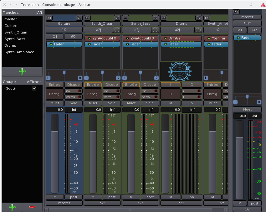 | Description | Kubuntu 14.10, Ardour 3.5.340 - 1 stereo audio track - 3 midi instrument tracks using ZynAddSubFx - 1 midi instrument track using drumgizmo When I try to change an output level (any midi or audio, or even master) using the ardour mixer, Ardour crashes totally, and sometimes to crash my KDE desktop (can't click anymore on buttons in dektop panel). I'm still able to switch on another TTY (CTRL-ALT-F5), which is working. | ||||