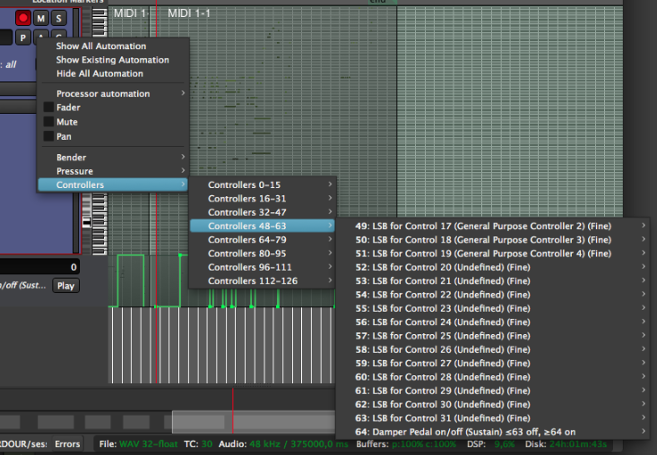 could rec notes + sustain with: 3.5-3981-g12803c4) could playback with: Ardour-3.5.4096 but it seams, sustain " isnt at the right place ( control 64 ) please see the 2 pics: whereIsSustain1 and whereIsSustain2 |