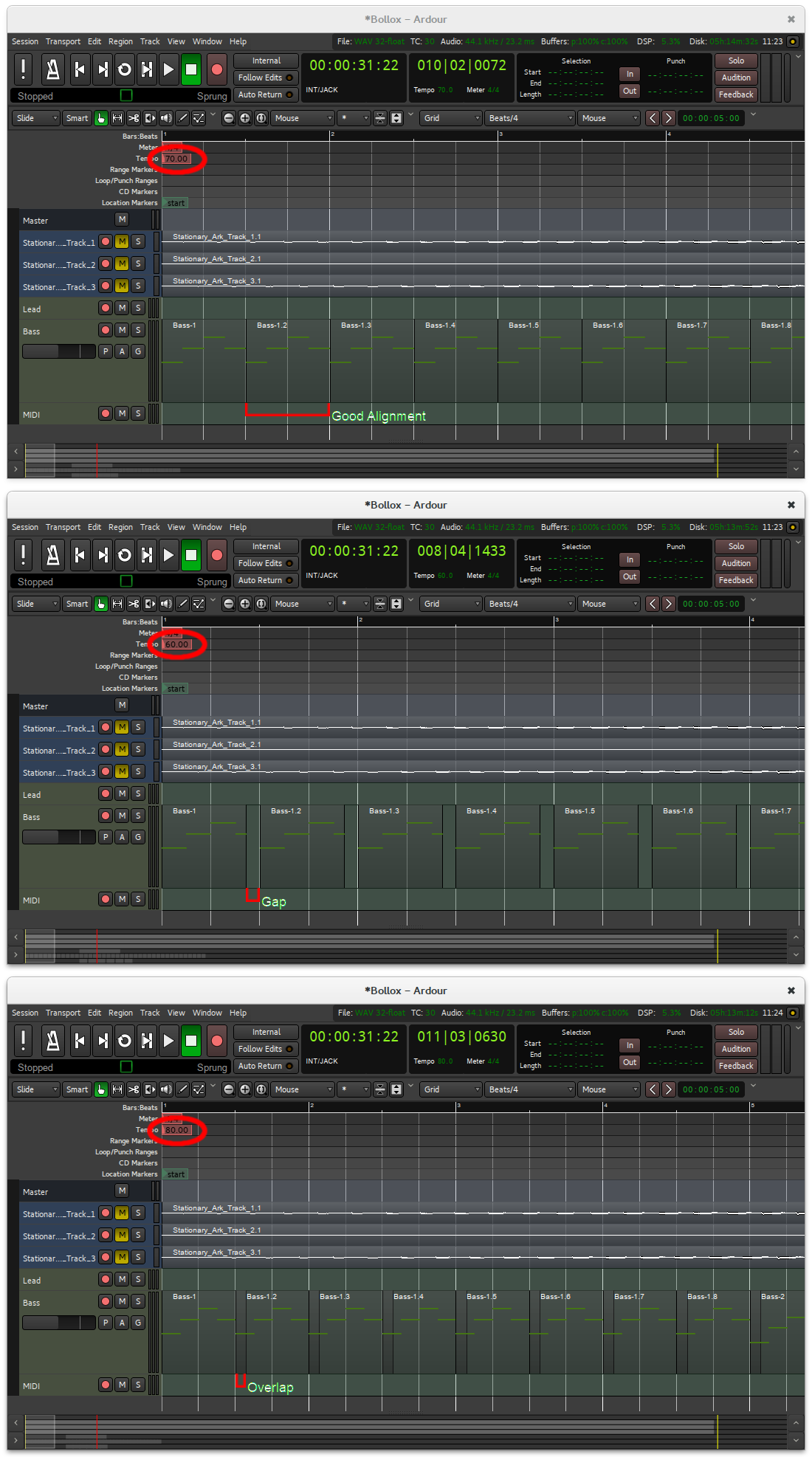 | Description | The grid is redrawn when tempo changes and this affects the duration of MIDI regions, creating gaps or overlaps depending on whether the tempo is raised or lowered. | ||||