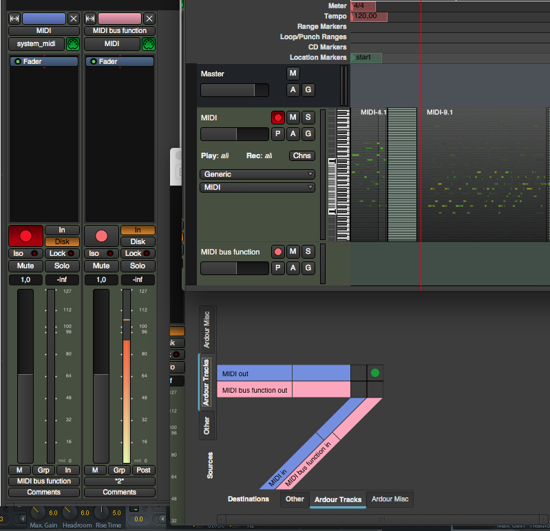 | Description | https://github.com/Ardour/ardour/commit/e7181c0cc49094d56eb1b9c320a1dc3bb34e50cd hi there is already a way to make MIDI re-recording to 1 MIDI track, using a 2° MIDI track " as MIDI " bus . ( already discussed with Robin) you hear what was just recorded ( <=> played) + what you add...( <=>record) This MIDI buss could replace the 2° MIDI track " | ||||