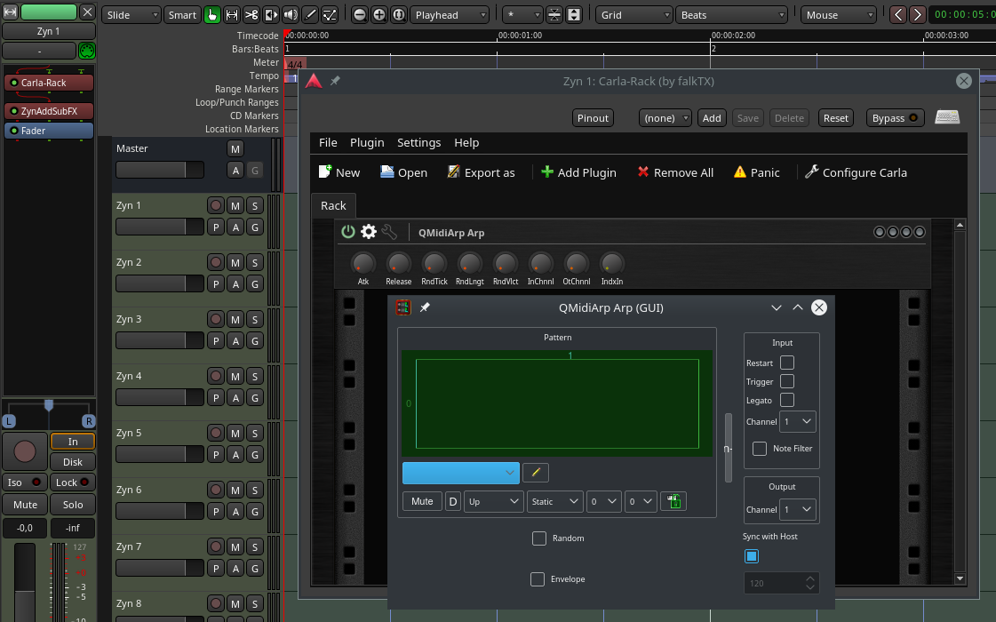 Now what is super strange to me is that QMidiArp GUI works if I load it inside Carla Rack loaded inside Ardour - I've uploaded a screenshot. |