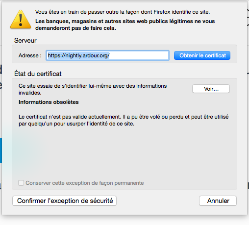 | Description | Hi, only info :) security alerts come with firefox not a problem... if needed; i have a .txt copy of certificate... | ||||
