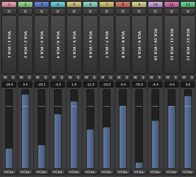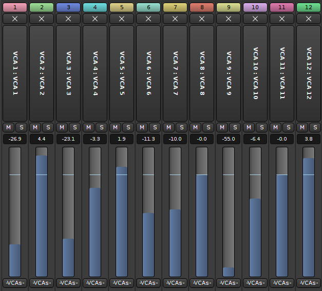 | Description | All other faders have a dark background but the VCA faders have a light background that makes it harder to see at a quick glance where the faders are, against the light blue foreground color. Adding more contrast and making the colors match the background color of the other faders would make this much easier to see. | ||||