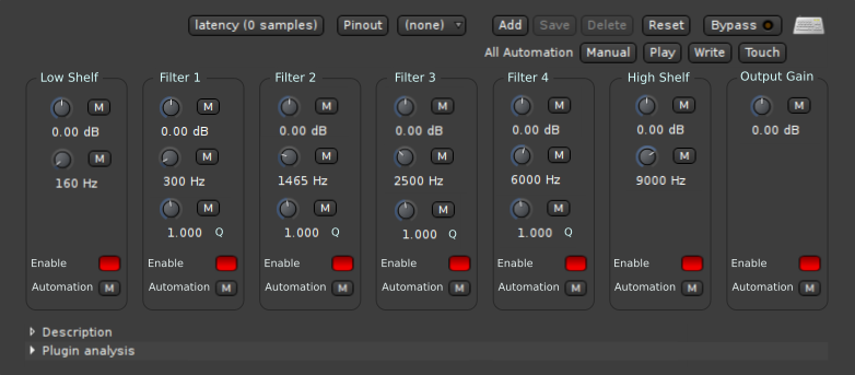 | Description | As I understand it, a-eq uses a generic plugin interface, using knobs instead of sliders. Other generic plugin interfaces use visual dividers. Could similar dividers be added around each filter to visually separate them? | ||||