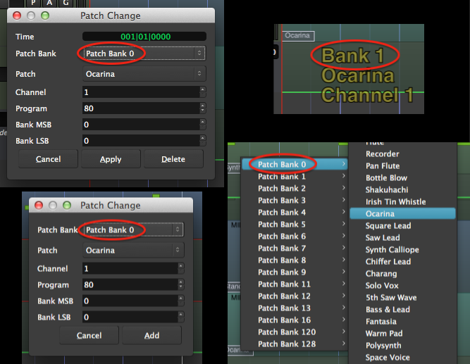 | Description | I can change this preference: Edit > Preferences > Appearance > Editor > MIDI Regions > Display first MIDI bank/program as 0 ...to shift the numbering system by one. I can add a patch change like so: Grab Mode > MIDI Region > Context Menu > [Region name] > MIDI > Insert Patch Change This brings up a window to configure the Patch Change. The first menu in this window (Patch Bank) does not reflect the aforementioned preference, but instead always starts the numbering from 0. Likewise the context menu that appears when right-clicking the Patch Change in Internal Edit Mode to rechoose a bank/program. As far as I can tell, the aforementioned preference only affects the label that appears when hovering the pointer over the Patch Change in Internal Edit Mode. | ||||