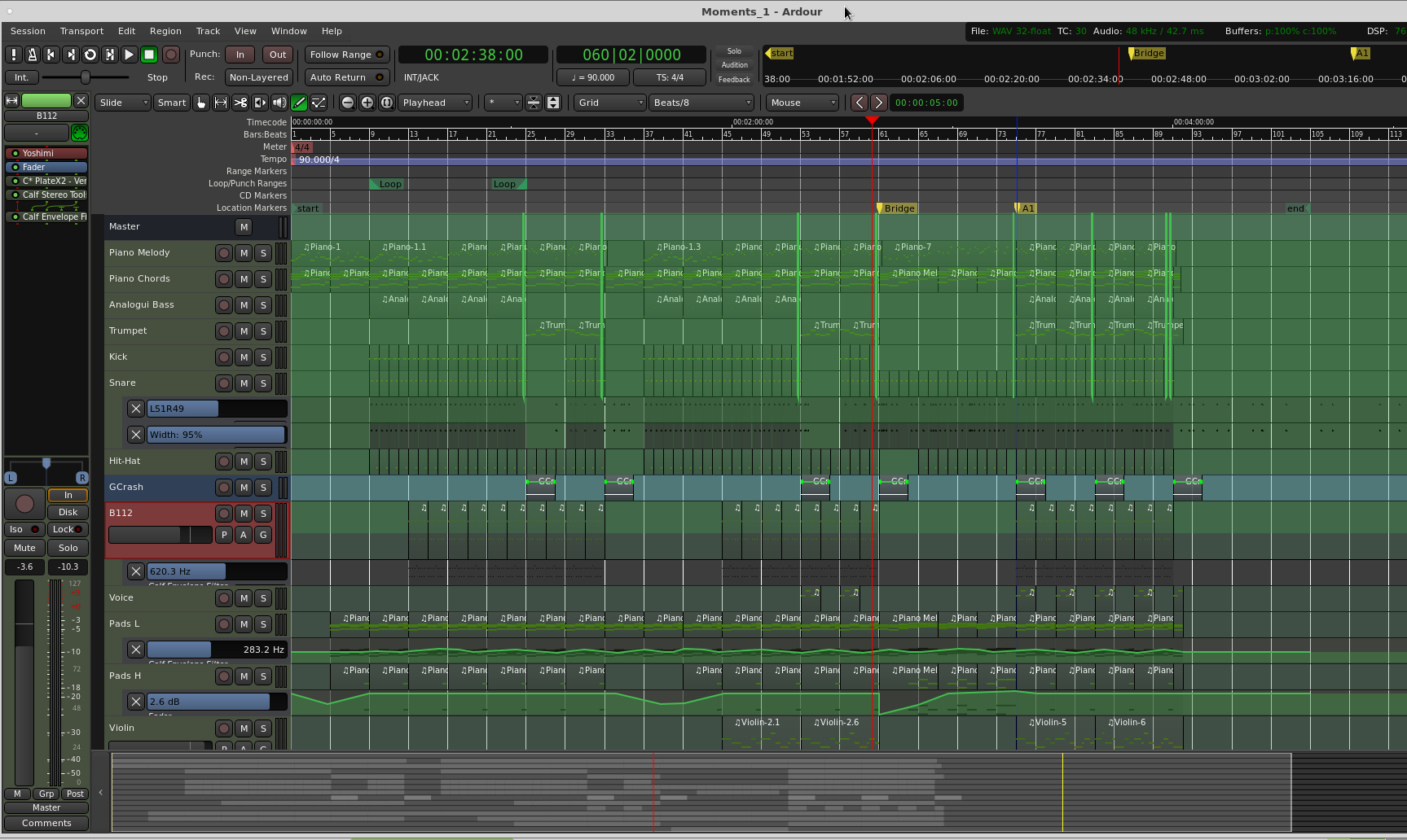 | Description | I added pan automation for MIDI snare track, and after I resized the automation to the minimum, the pan automation still is shown above the rest of the tracks. It disappeared if I clicked on the close automation button. The screenshot is attached Ardour version (I've built it form repo): Ardour 5.11.155 "More Music for Films" (rev 5.11-155-g467c801ce) Intel 64-bit - debug | ||||