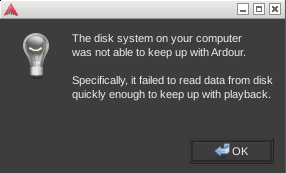 | Steps To Reproduce | Open Ardour and load project Session > Export > Export to Audio Files > File format: BWAV 24 bit TIme span: Session Channels: Master Press [Export] The export starts, and about halfway a dialog appears that the disk cannot keep up with Ardour. This is reproducible with this project and does not happen with other projects. | ||||