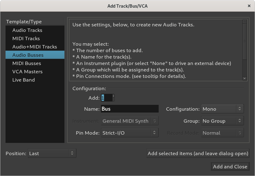 | Summary | 0007925: Add Track/Bus/VCA Dialog shows "Audio Busses" in left menu and then speaks about "Audio Tracks" in right description | ||||