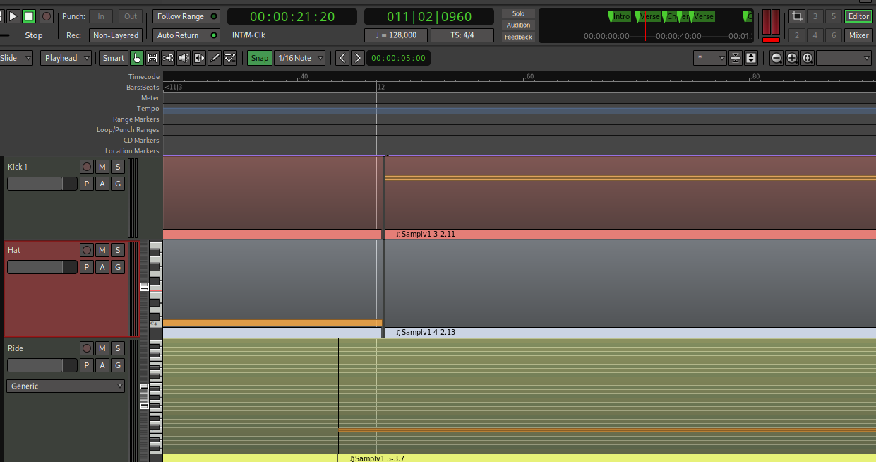 | Description | More often than not when I'm looping regions, the beginning of some MIDI tracks don't play audio so whenever I zoom in to check what's going on, I see really tiny misalignments on the midi regions compared to the grid itself. This is really annoying as you can see this extreme case image attached here. It looks like it happens more whenever I'm using the "Mouse" mode within the editor and duplicating lots and lots of regions / resizing regions but this isn't an universal rule, it happens on the edit points as for Marker and Playhead as well, less worse misalignments on Marker mode as it looks like it (can be placebo but whatever). Those are usually tiny, tiny, tiny misalignments, about a pixel at max zoom in level but they eventually sum up. More detailed info and a demo video at the end of Additional Information section. This looks like some rounding error? Quantizing the regions after creation could solve that? Only let "broken" numbers (region position) whenever ALT key is pressed i.e. moving voice samples or FX to a "not-aligned part of the beat? | ||||