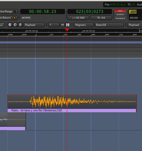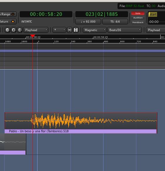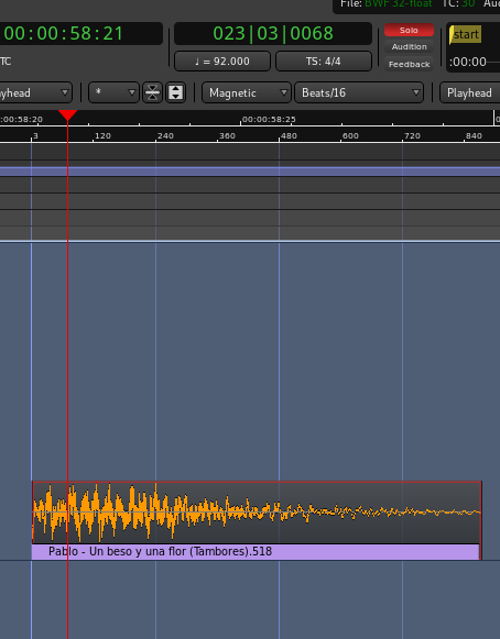 | Description | Ctrl+left/right arrow doesn't seem to be detecting consistenly the same transient after a region duration is modified. In t1.png transport is on the transient first detected, almost on the beat. In t2.png I extended region duration both sides and now the transient is detected fairly off the beat. Pressing again ctrl+left/right arrow doesn't get me any "new" transient, it's just the the same transient detected elsewhere. I have just extended the region, not moved it. Another example, in t3.png transient is detected very off the beat. In t4.png I extend the region and I get two new transients, one before the beat (same t4.png) and one after the second beat (t5.png). Pressing ctrl+left/right arrow gives me just those two, not the one I got at the beginning. That's the main problem, but since we are at it I'd like to point out that most times what is seen as the spot where the transient is detected, it doesn't relates visually to what's heard, meaning that it's like wave image is rendered with some delay that makes it seem like the transient is past the start of the wave. One last thing, there are a number of posts in discourse about the behaviour of transport as editing point and how zoom influences the spot where an action can be done. When I drag the transport and start making editings I see this zoom factor convenient and logical, but that becomes a problem when I want to edit right in the spot where I have just made Ardour to detect a transient. It is not convenient that if I have just pressed "Ctrl+right arrow", wanting the transport to be at the exact next transient, and then press "S" to split the region Ardour makes the cut on the closest grid line, the whole transient detection loses then its purpose. Then I have some options, either I zoom in each time until I am sure the cut will be done where I want, or I disable the grid, but both ways imply that I would be in and out of a redundant action. It would ideal that Ardour processed differently the editing point action depending on whether we have just dragged the transport or just detected a transient. Thanks for your time. | ||||