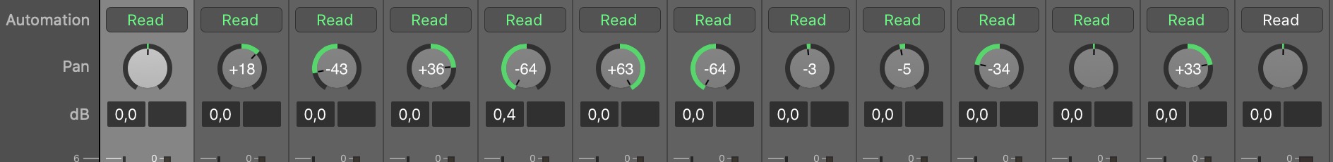 Just to give my 2c for whatever reason. To me, the Logic sample above is a lot cleaner and the pan information is isolated visually. The Ardour pan view is filled with a lot of lines and rectangles and it is a lot more difficult (for me at least) to focus on the pan information. It gets lost (more or less) among lines and rectangles vs logic has an isolated knob with both ring-led and number.. I am used to Ardour so it is not a problem but I think sonnie has a valid point. I too mean this respectfully :-) |