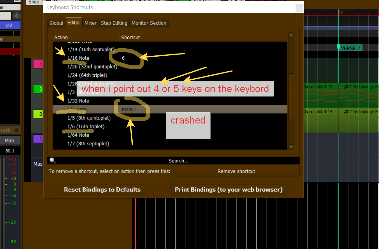 | Description | Crashes when i want to give a hot key snap 1/4, 1/16 - keybord key 4 or 5 in windows | ||||