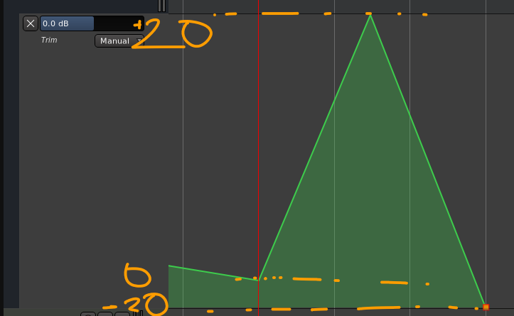 | Description | The Trim automation has a very strange dB scale mapping. Zero is not in the middle, but almost at the bottom. I'm attaching an annotated screenshot. | ||||