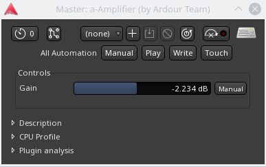 One option would be have an option or two buttons: "Apply to output" "Add [new] a-amp plugin with target gain". I've removed the a-amp prototype for various reasons: * it's not suitable for incremental changes * user can re-order it and place a limiter after it Since LAN measures the output it would receive an already limited signal, and then change the gain before the limiter. If a limiter is involved we also need to measure the signal before the limiter. Also I'm no longer sure if this should not have been part of the export workflow: Say I want to have 3 versions, one for Spotify one for Apple-music and a CD. It'd be nice if all 3 could be exported in one go without manual intervention. |