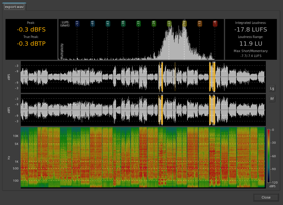 Just tried 6.2.120 and this is really fabulous. One major issue: 1) When applying "using the custom gain processor position", subsequent analysis should still take place at the very end of the chain. For example, I analyze a song, choose the YouTube preset and disable true peak so that the integrated loudness target gain is applied. On re-analyzing, despite a true-peak limiter after "Volume Ctrl" plugin, the true peak is reading 0.0 versus -1.0. And a few minor quibbles: 2) "Custom gain processor position" is a bit of a mouthful! Perhaps "Custom amplifier position" or "Custom amplifier plugin". 3)The tooltip that accompanying is excellent. Perhaps explicitly noting "…potentially followed by a limiter to conform to both loudness and peak requirements" would be good. That's about it. The conformity analysis is amazing but, again, requies that analysis is always end of the chain despite using the custom option. |