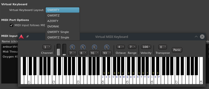 | Description | The virtual keyboard is a great feature, thought right now it's not possible to use it solely with the mouse. I can imagine some users wanting to have their computer keyboard only ever triggering actions in Ardour, while having the virtual keyboard out there to use it with their mouse. Currently there's no way to disable the virtual keyboard stealing some keys. Please add a "None" or "Disabled" option to the Virtual Keyboard layout! | ||||