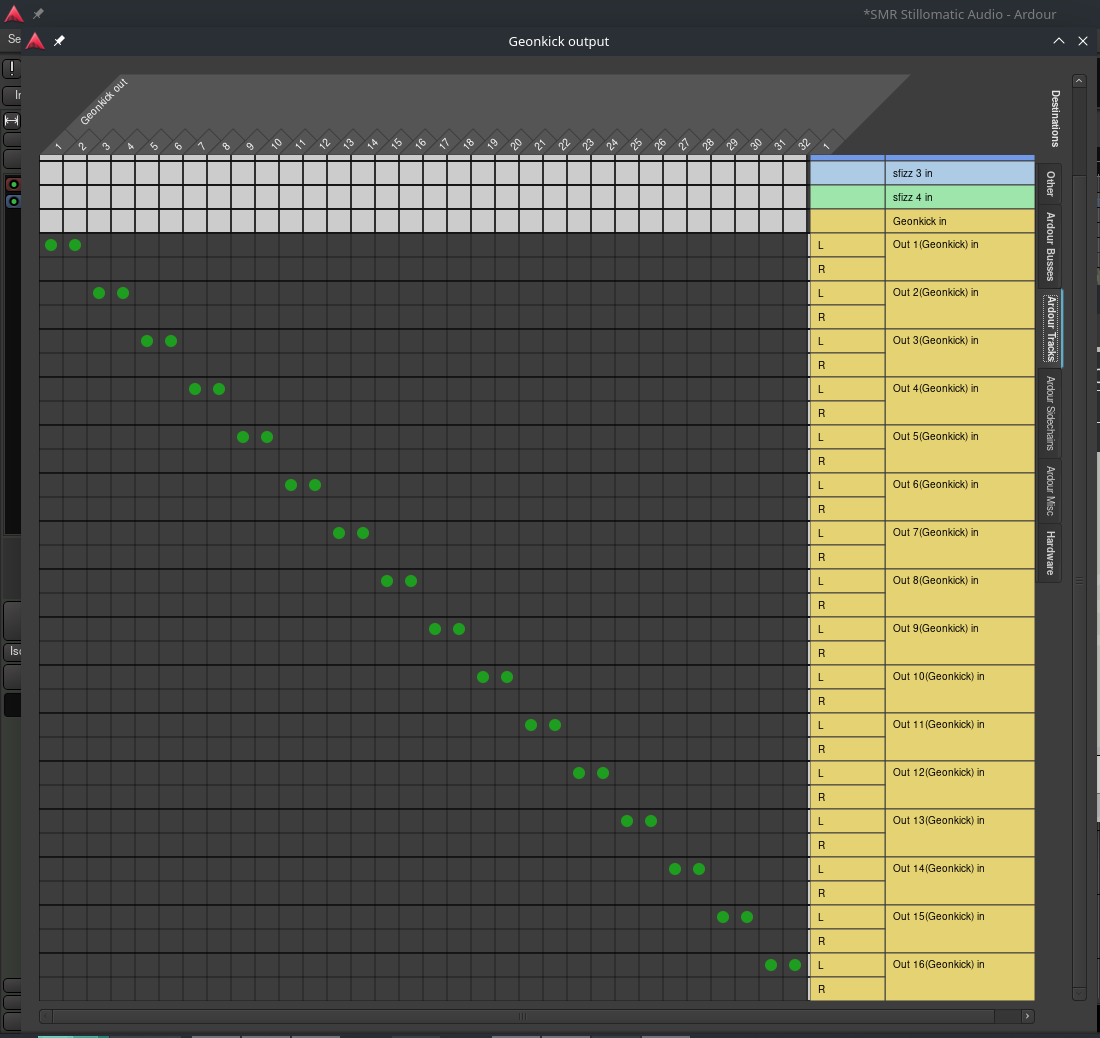 DescriptionGeonkick synth uses groups to group port as stereo channels. The issue is that Ardour routes both Geonkick stereo grouped channels to the left channel of the associated Track when fanout. If I am removing groups than routing for fanout is done correctly. I wanted to ask if Ardour supports groups. I might be an issue from Geonkick manifesto but from my point of view it seems that the ports and groups are defined correctly in ttl.