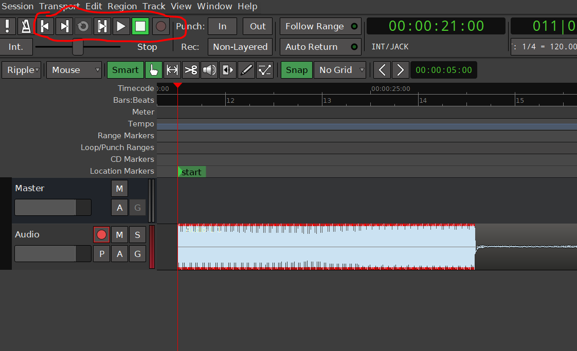 | Additional Information | I am using a lenovo laptop, and my clicking device is the touchpad, so I also tried a USB mouse -- same problem. It seems like after the first time you click in the "track window" where the audio waveforms are, then the controls work for one or two events, but after that the space bar no longer toggles playback, and then you click on the gui controls, and maybe that works or the second time it does. If I use the ASIO::ASIO4ALL v2 driver, the transport functions more predictably. This one is a doozy. | ||||