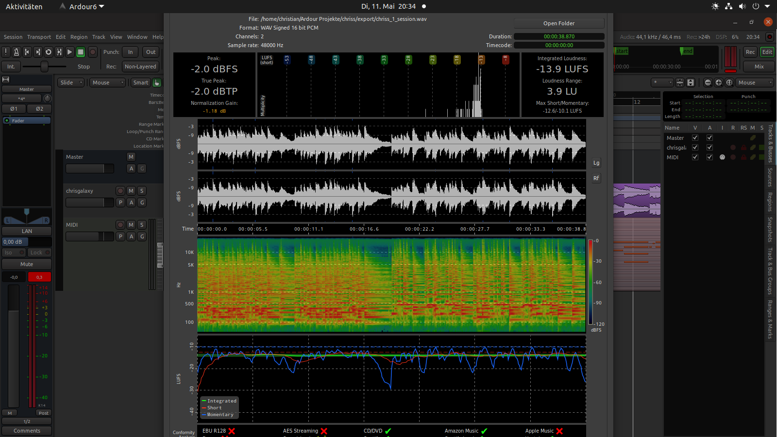 | Description | The "Export Report / Analysis" window which you get after exporting a session needs a scrollbar. It is too big for my screen (1600x900). See the screenshot. Thank you! Ardour Version 6.6.479 on Ubuntu 20.10. | ||||