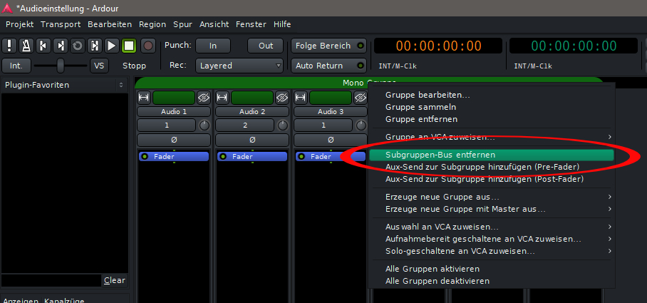 | Description | subgruppenbus1.jpg: If I just remove the SUB group bus, Ardour doesn’t crash yet. subgruppenbus2.jpg: The SUB group bus has been removed. But!!! If I now call up the context menu of the mono group, the “Remove SUB group bus” button is still available in the context menu, although the SUB group bus has long since been deleted. Now when I click the “Remove SUB Group Bus” button, Ardour 7.0 crashes. | ||||