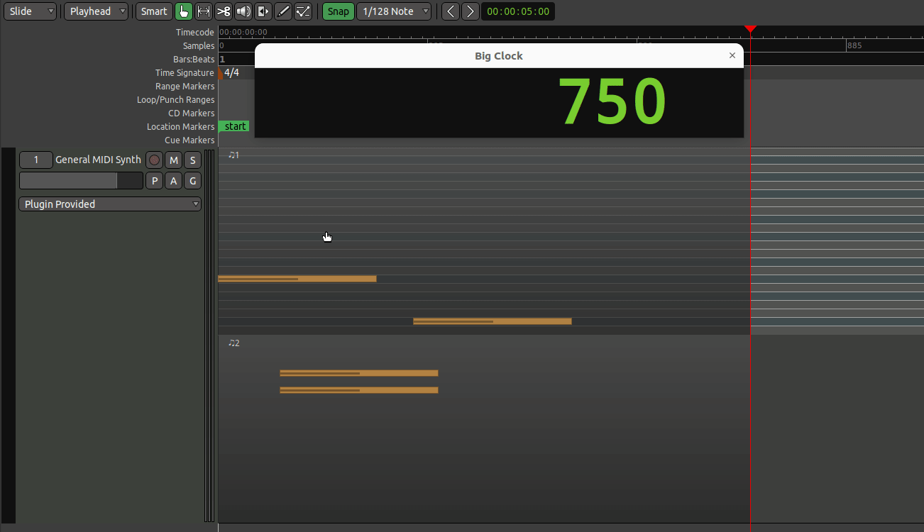 | Description | If you create a MIDI region 750 samples long (1/128 Note) - and then use the operation "Set Range to Selected Regions" (Edit > Select > Set Range to Selected Regions) - this makes range 25 samples shorter than the selection. | ||||