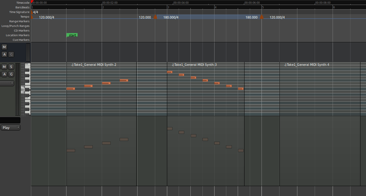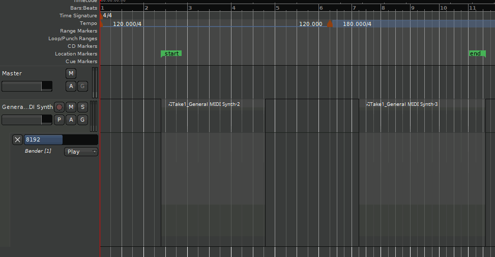 | Steps To Reproduce | 1. Create a midi track with two midi regions. 2. In-between the regions, create a tempo change marker, so the first region is in 120bpm and the second region is in e.g. 180 bpm. 3. Enable a midi parameter automation lane for the track, e.g. Bender or CC. 4. In draw mode, drawing in the first region's automation area works fine. Drawing in the second region's automation area (after the tempo change) does not work correctly. When clicking to add nodes, they are offset i.e. do not appear where clicked. | ||||