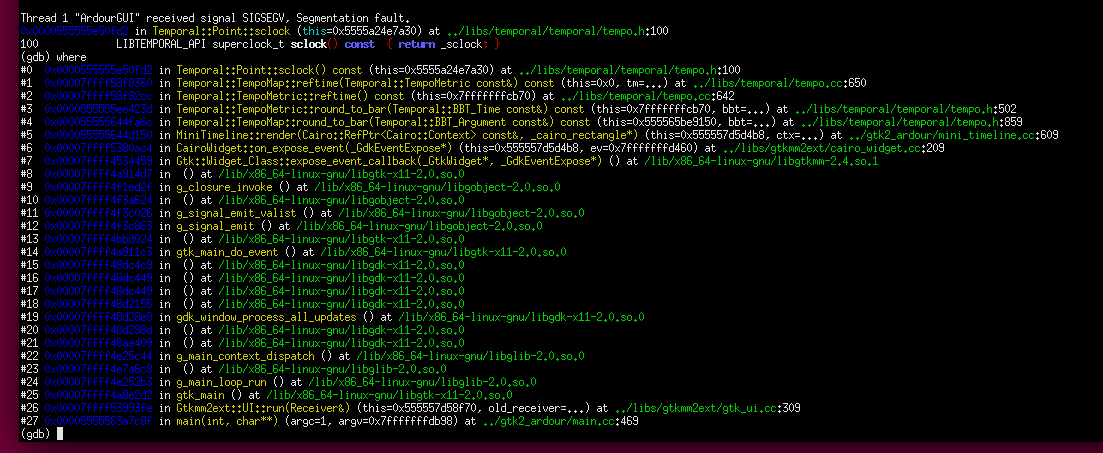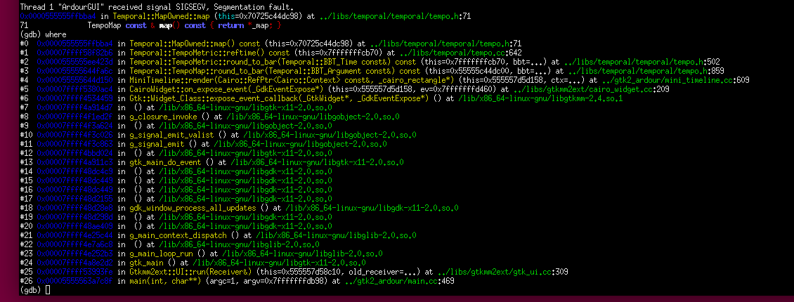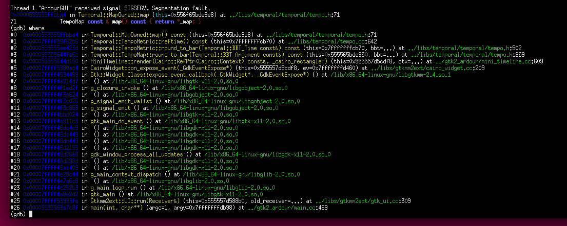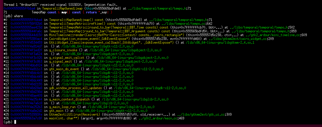 Thread 1 "ArdourGUI" received signal SIGSEGV, Segmentation fault.