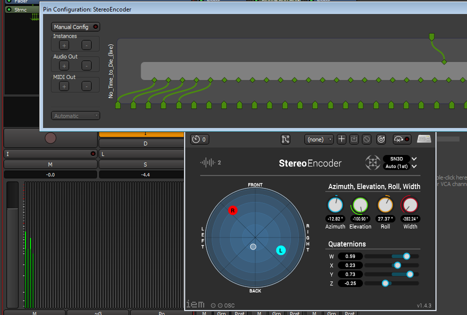 | Description | After updating to 7.3 all my projects using IEM plugins for ambisonics had no sound going through the tracks and busses with those plugins. I tried on new projects and the same happened. Vanilla 4 channel with the default ardour 360° panner works, but as soon as I drop a IEM stereo Encoder, or a IEM binaural decoder somewhere there is no longer any sound coming through. All activity also stops on the meters, as if there were no audio on the track or being routed to the bus. Note that this is also true when placing the plugins post-fader. Reverting to 7.2 fixed the issue. | ||||
