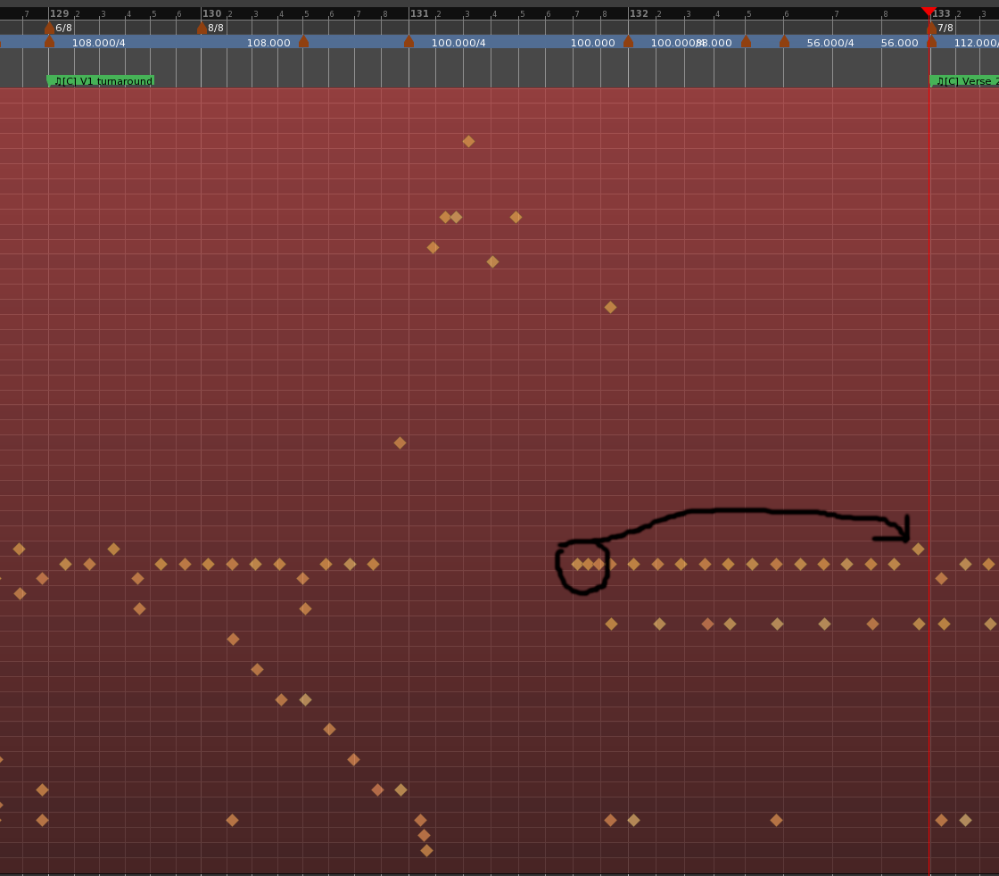 | Description | I recorded a MIDI region in a session in 7.3. When adding tempo changes on the Tempo ruler, the notes move around to conform to the shorter/longer bar (time) durations. However, when the region is exported to a MIDI file and imported into a different 7.3 session, the notes are static and do not move around to conform to shorter/longer bar durations caused by changing tempos on the Tempo ruler. What's more, whilst the MIDI notes appear in the wrong places (because the region appears to be at a fixed tempo over bars of varying tempos), the notes sound in different places to where they appear -- they more-or-less where they should (i.e. the MIDI output is conforming to the tempo changes). I tried reproducing this by creating a brand new session in 7.3, recording MIDI, exporting it, then importing the file into another (brand new) 7.3 session but everything worked as expected. The only thing I can think is that the sessions where I experienced this were first created in 7.0 (and I no longer have that installed to try to replicate) but now using 7.3. Screenshot 1: shows the MIDI notes recorded in the session Screenshot 2: shows the same session, but with tempo changes added. The notes conform to the changing tempo marks Screenshot 3: shows an export of the MIDI from screenshot 1, imported into a different session, with tempo changes already on the timeline. The notes do not conform to the changing tempo (even when moving the region) and do not sound where they appear on the timeline. For example, the three hits in quick succession (circled) that should appear as a pick-up to the 7/8 bar (bar 133, see screenshots 1 and 2) appear about a bar early, but sound at almost the correct point (the arrowhead, just before bar 133) | ||||