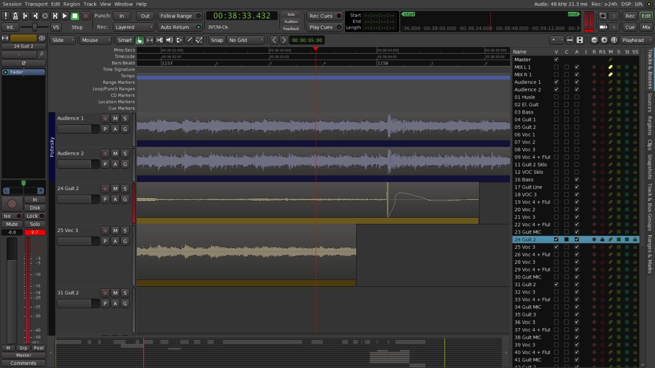 | Description | If I don't use a high zoom level, the waveforms on all tracks look the same. The first picture shows a high zoom level, where you can see the differences in the waveforms. The second image shows one step lower zoom level. If I use the rebuild waveforms function, nothing changes. At a lower zoom level, short peaks are not visible on the waveform, for example when the cable is disconnected from the guitar. The third picture shows a high zoom level, where you can see the peak in the waveforms. The fourth image shows one step lower zoom level. On the MAC, the display of waveforms is fine. | ||||