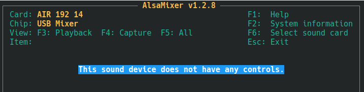 Alsamixer says: This sound device does not have any controls (see attachment). Pulseaudio backend (Pipewire-pulse) works OK. My HW: - CPU: Ryzen 7 5700X, - 32GB RAM, - 2TB NVME disk No performance issues noticed ever. |
