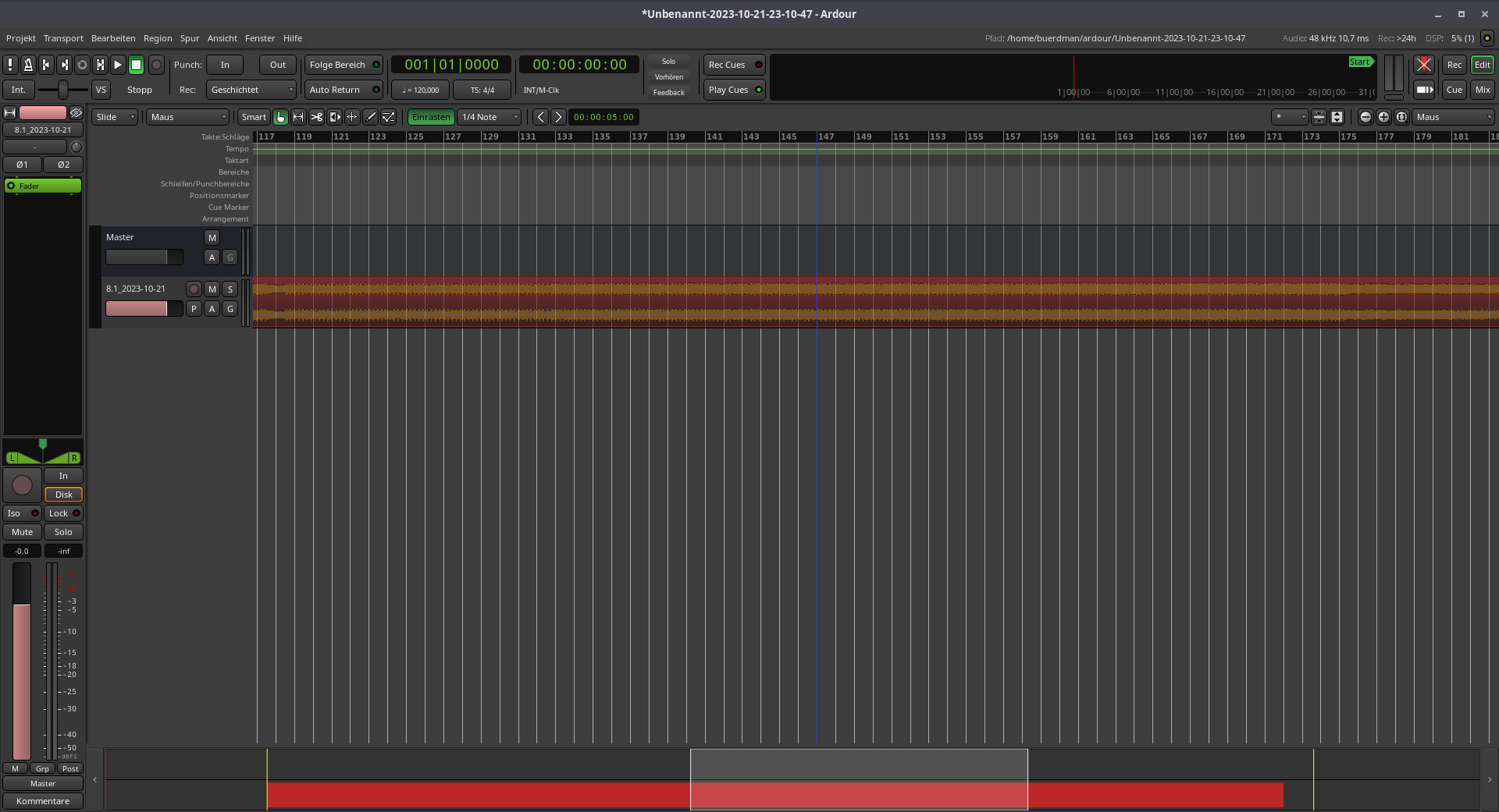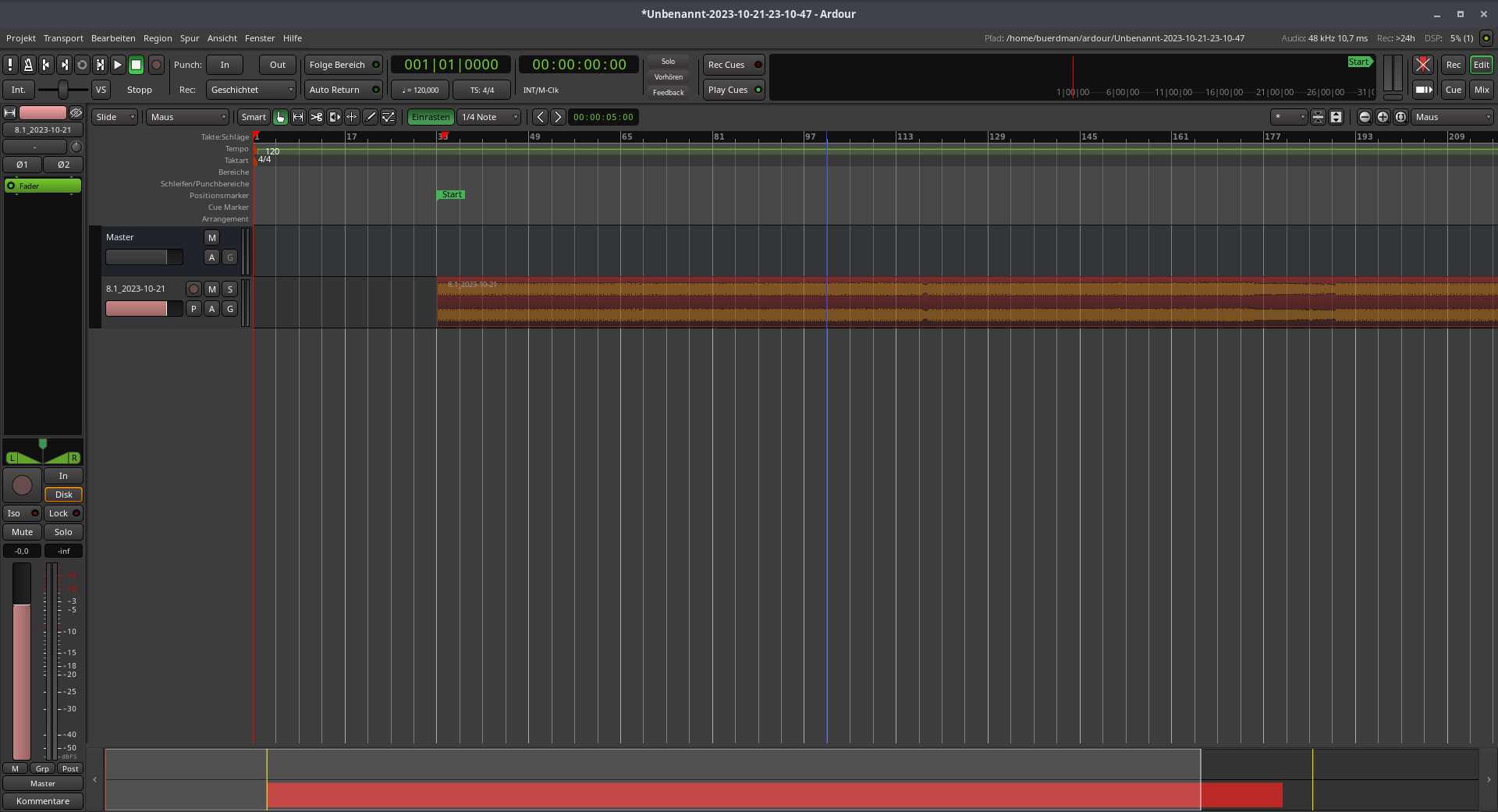 | Description | In Ardour 8 and 8.1 the grid disappear at certain project lengths, certain zoom levels and certain scroll positions. In the video I opened a new project and inserted an audio file without plugins or similar. I tried it with different Ardour graphics options and raster resolutions. | ||||