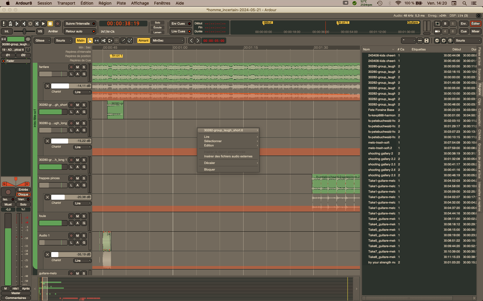 | Description | While searching region in the side window "Regions", I used the right-click searching for an option and the contextual menu for the region I previously edit appears. It cannot be clicked, moved or removed If I hide Ardour it stays on the desktop I can still work, the application does not crash but it's really annoying because I have to quit and reastart to make i disapear... it's the second time it happens to me (first time I don't remember exactly what I was doing) | ||||