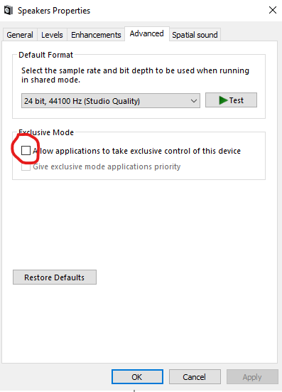 @Phantom, did you disable both the playback and record devices ? Sorry, I did not mention disabling the record devices in my previous post. If you did disable both playback and record devices in Windows, another setting you can try is the "Allow applications to take Exclusive Control" option. Check or Uncheck it and give that a try and see if that works. Just make sure to set that back to what it was if it does not work.