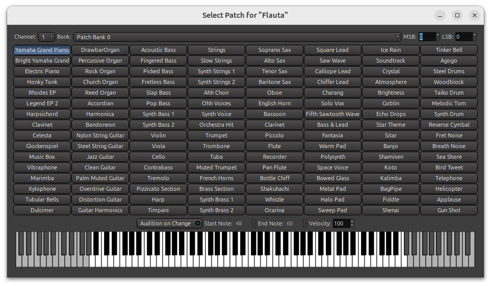 | Description | Tested with gmsynth and ACE Fluid Synth. Choose a sound patch, save project, reopen, the chosen sound patch is gone, restored to default. Insert a Midi Beat, save song, reopen, the chosen drum sound patchbank is gone/reset to piano sound Working in Ardour 8.6 | ||||