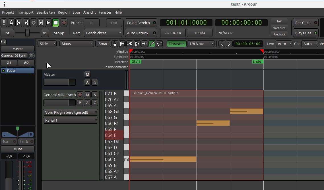 | Description | If I start playing a midi region (the playhead is at region beginning) there is no sound for about 1-2 secs. So I can't hear the first Midi Events. Ardour 8.7.75 | ||||