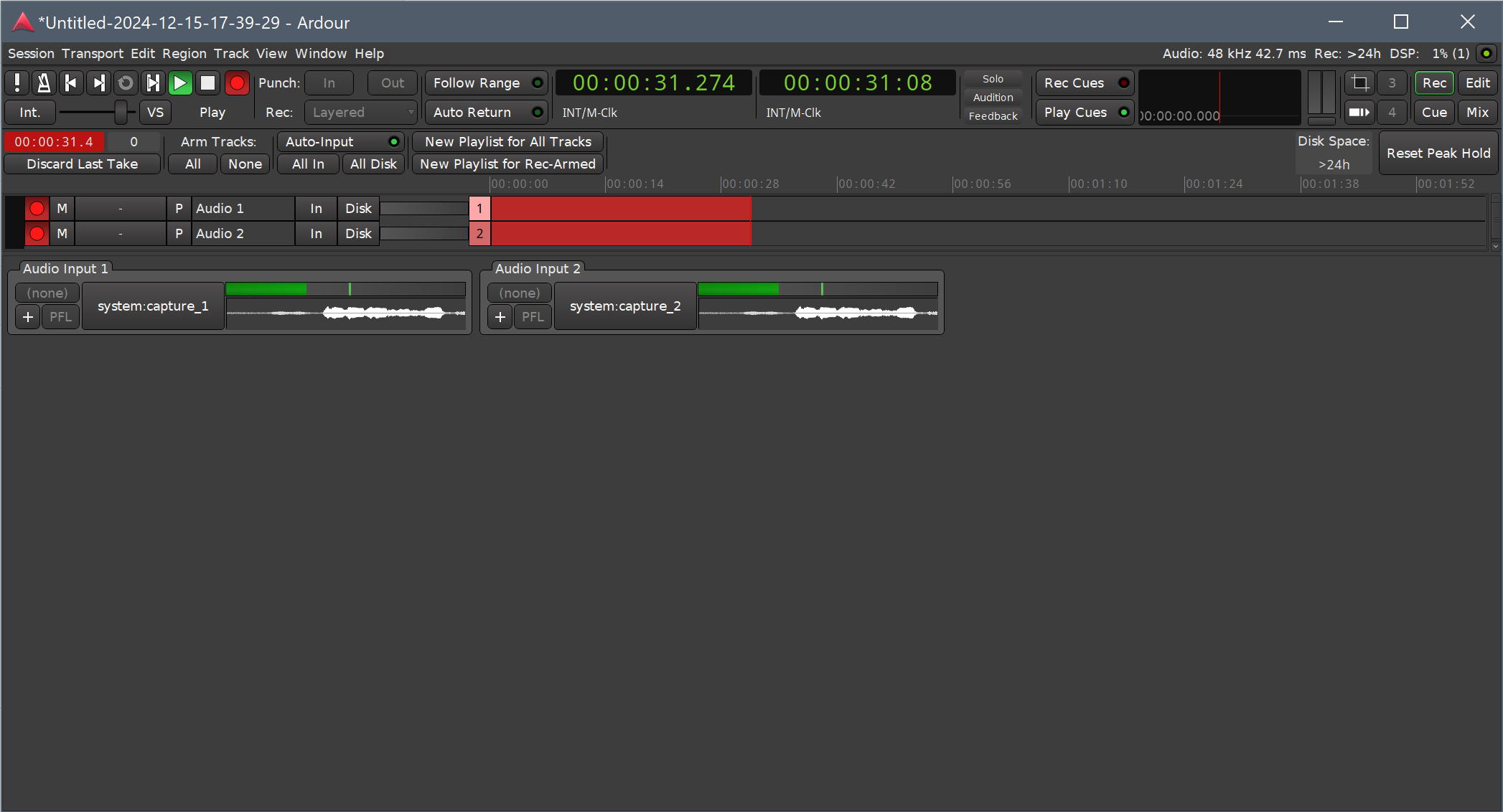 (Attaching my session file.) 2024.12.15. Ardour records digital silence.ardour (52,937 bytes)