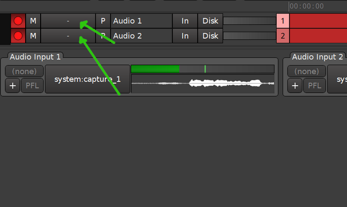 | Steps To Reproduce | Steps to reproduce: - Launch Ardour creating a new recording session - in the recorder window -- arm tracks for recording -- visually confirm that signal is coming in on channels -- record -- stop recording -- check recorded audio visually and by playing back Expected result. - audio appears in the editor window as waveforms, and can be heard when playing back and meters show levels properly Actual result: - in the editor window, zooming into tracks shows digital silence (flat line) - region properties window shows peak amplitude at -inf dBFS - playing back the recording causes no signal to appear on level meters (everything stays at -inf) | ||||