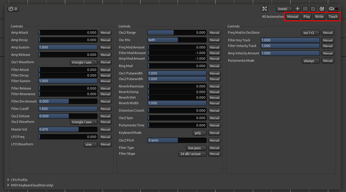 | Steps To Reproduce | > add a MIDI Track with a plugin/instrument that has 'Processor automation', like "amsynth" or "Surge XT" > on Editor Mixer > Edit with generic controls... > check the top right corner "All Automation" | ||||