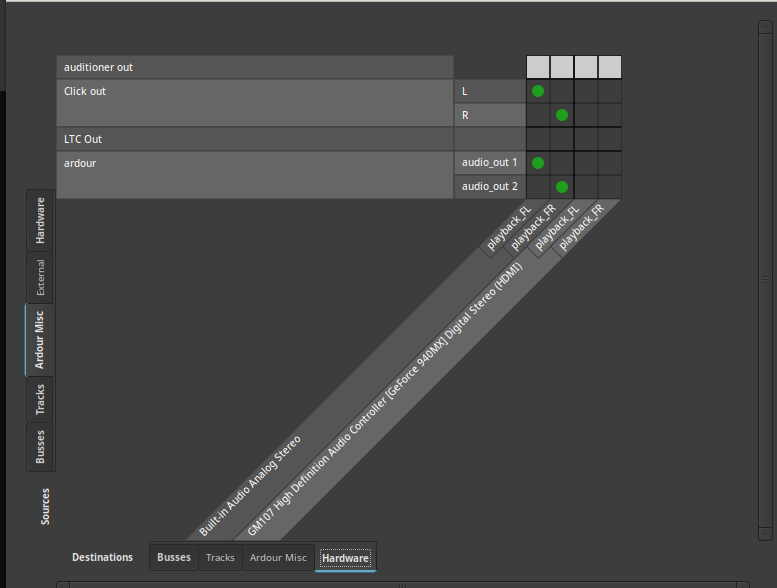 Regarding the disabled "auditioner" routing in the Audio Connection Manager: How can I get that back to enabled? |