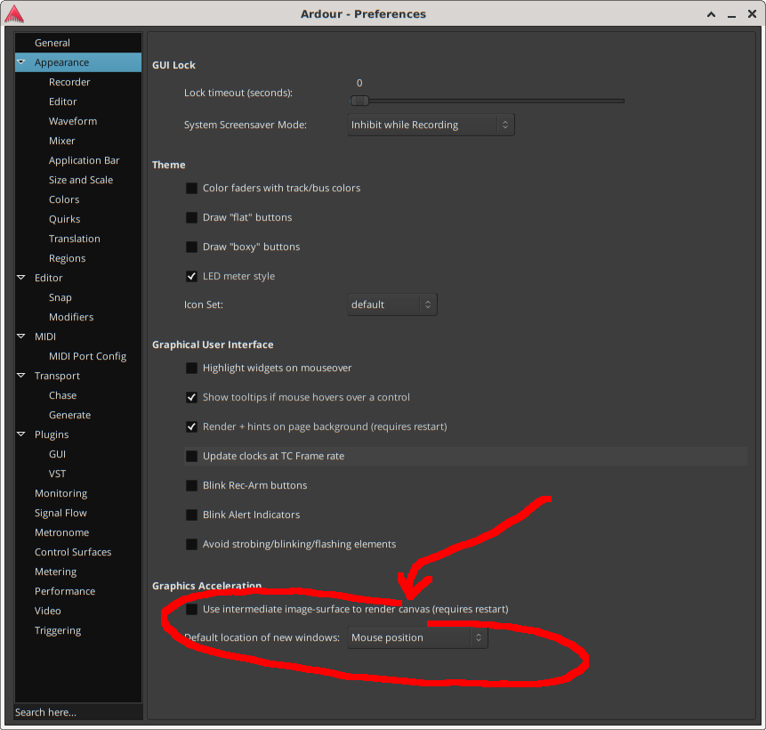 | Description | I have mentioned this in the past. Ardour is designed to open up dialogs, windows, plugin GUI windows where your mouse cursor is located. To me this has always been very confusing and is the only program I have ever seen do anything like this. Here are just a couple of examples of issues I have experienced with this behavior. -Sometimes I use "X" or hotkey to close Ardour. I still get tricked each time because I am looking in the center of my screen and do not see anything, I then think maybe I did not apply hotkey or click on the "X" correctly but then realize that the little "are you sure" dialog is opened somewhere on my screen already. -Another issue is when in the Mixer when you click on effect button to open effect GUI window for the first time (remembers location for that session after) the effect GUI opens right on top of that mixer channel blocking anything from being seen, prevents the ablity to do things like open up another plugins window or even toggle that window back close if just checking something quickly. Suggesting to add some options in Preferences - Quirks section :) to allow users to choose how / where these items are opened. Could get tricky how many settings to add but I will mention some ideas and developers can choose if interested in adding this request. QUIRKS -Center dialogs and windows for their first open but remember their location/size after repositiioned -Center dialogs and windows always (only remembering size adjustements) Probably will not be considered but could also offer a different set of same settings mentioned above specifically for plugin GUI windows -Center plugin windows for their first open but remember their location/size after repositiioned -Center plugin windows always (only remembering size adjustements) Thank You | ||||